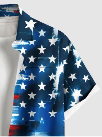 Short Sleeves Shirts > Plus Size Patriotic American Flag Coconut Tree Bird Print Buttons Pocket Hawaii Shirt For Men