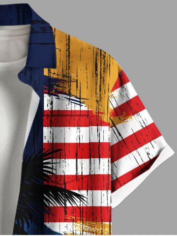 Short Sleeves Shirts > Plus Size Patriotic American Flag Coconut Tree Colorblock Print Buttons Pocket Shirt For Men
