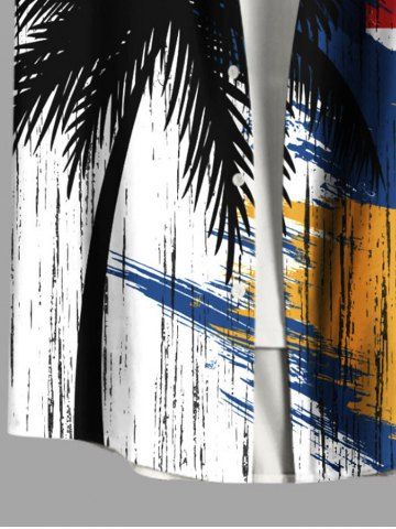 Plus Size Patriotic American Flag Coconut Tree Colorblock Print Buttons Pocket Shirt For Men - Yellow - 3xl
