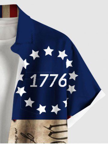 Short Sleeves Shirts > Plus Size Patriotic American Flag Coconut Tree Distressed Newspaper Print Hawaii Button Pocket Shirt For Men