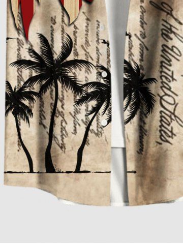 Plus Size Patriotic American Flag Coconut Tree Distressed Newspaper Print Hawaii Button Pocket Shirt For Men - Light Coffee - 6xl