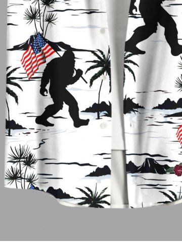 Plus Size Patriotic American Flag Coconut Tree Gorillas Print Buttons Pocket Shirt For Men - White - 4xl
