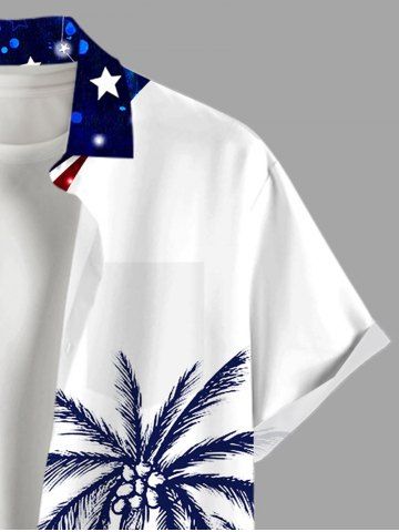 Plus Size Patriotic American Flag Coconut Tree Print Buttons Pocket Hawaii Shirt For Men - Blue - S