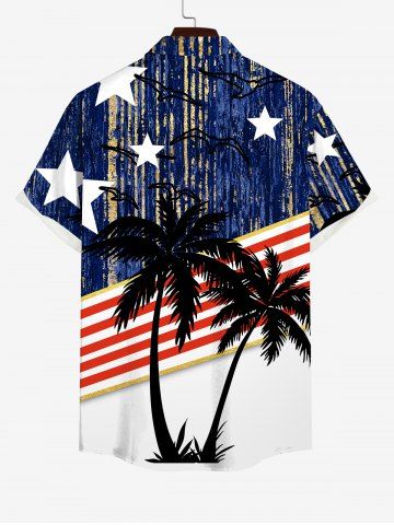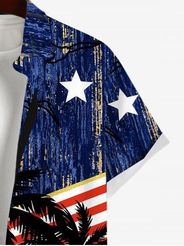 Short Sleeves Shirts > Plus Size Patriotic American Flag Coconut Tree Star Print Buttons Pocket Hawaii Shirt For Men