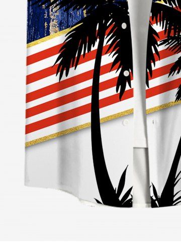Plus Size Patriotic American Flag Coconut Tree Star Print Buttons Pocket Hawaii Shirt For Men - Multi-a - 4xl