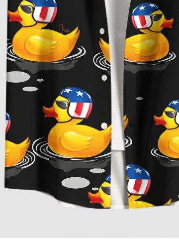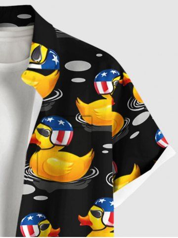 Plus Size Patriotic American Flag Duck Print Hawaii Button Pocket Shirt For Men - Black - 6xl