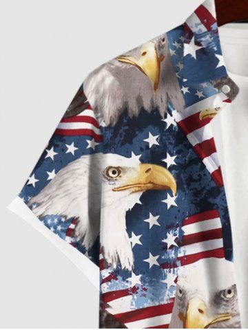 Short Sleeves Shirts > Plus Size Patriotic American Flag Eagle Print Buttons Pocket Shirt For Men