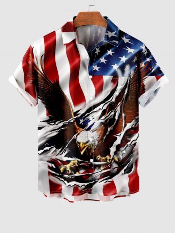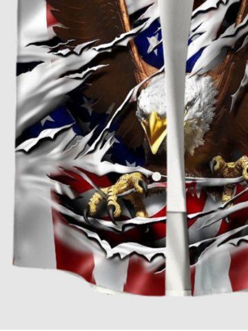 Plus Size Patriotic American Flag Eagle Ripped Glitter 3D Print Buttons Pocket Shirt For Men - Multi-a - 2xl