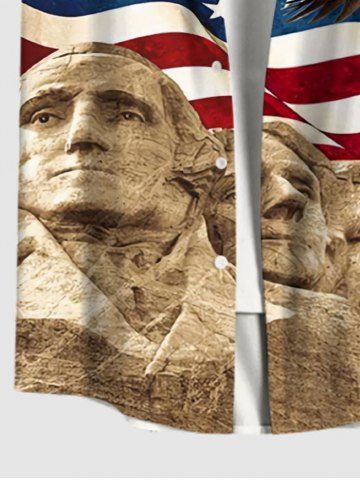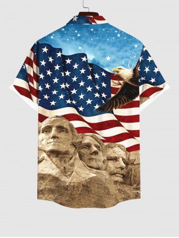 Short Sleeves Shirts > Plus Size Patriotic American Flag Eagle Stone Statue Print Buttons Pocket Shirt For Men