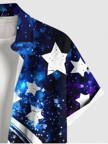 Plus Size Patriotic American Flag Galaxy Print Buttons Pocket Shirt For Men - Blue - 3xl