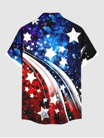 Short Sleeves Shirts > Plus Size Patriotic American Flag Galaxy Print Buttons Pocket Shirt For Men