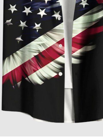 Plus Size Patriotic American Flag Light Beam 3D Print Buttons Pocket Shirt For Men - Black - 6xl