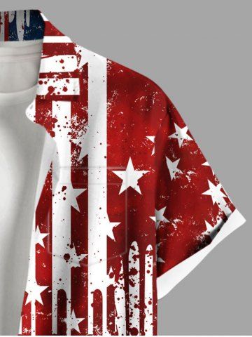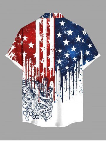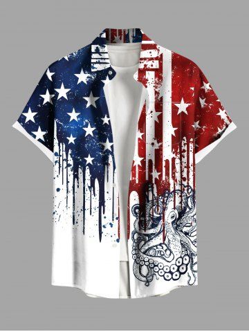 Short Sleeves Shirts > Plus Size Patriotic American Flag Octopus Paint Drops Print Buttons Pocket Shirt For Men