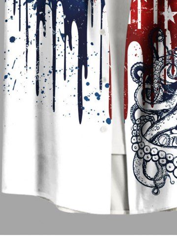 Plus Size Patriotic American Flag Octopus Paint Drops Print Buttons Pocket Shirt For Men - White - 2xl