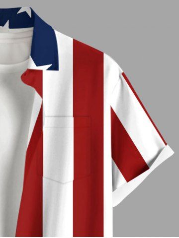 Short Sleeves Shirts > Plus Size Patriotic American Flag Print Buttons Pocket Shirt For Men