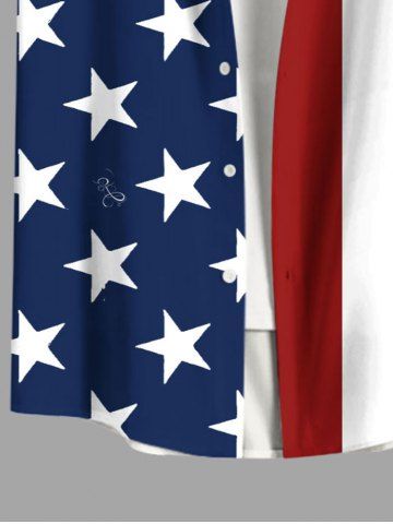 Plus Size Patriotic American Flag Print Buttons Pocket Shirt For Men - Blue - 6xl