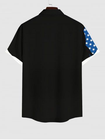 Plus Size Patriotic American Flag Skull Print Buttons Pocket Shirt For Men - Black - S