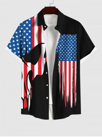 Short Sleeves Shirts > Plus Size Patriotic American Flag Skull Print Buttons Pocket Shirt For Men
