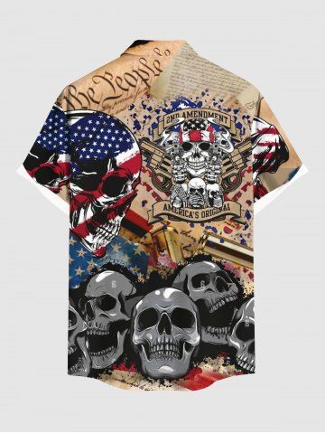 Short Sleeves Shirts > Plus Size Patriotic American Flag Skulls Newspaper Print Buttons Pocket Shirt For Men