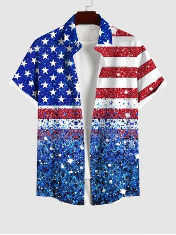 Plus Size Patriotic American Flag Sparkling Sequin 3D Print Buttons Pocket Shirt For Men - Multi-a - M