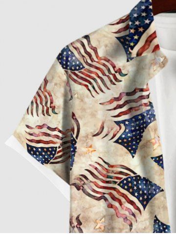 Plus Size Patriotic American Flag Star Print Shirt For Men - Multi-a - 2xl