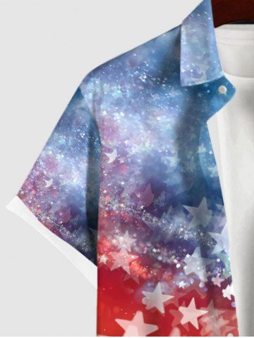 Short Sleeves Shirts > Plus Size Patriotic American Flag Tie Dye Galaxy Print Buttons Pocket Shirt For Men