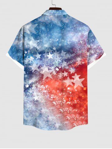 Short Sleeves Shirts > Plus Size Patriotic American Flag Tie Dye Galaxy Print Buttons Pocket Shirt For Men