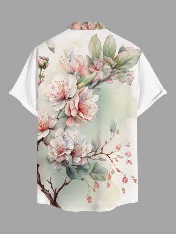 Plus Size Peach Blossom Flower Leaf Ombre Print Buttons Pocket Hawaii Shirt For Men - Light Pink - 4xl