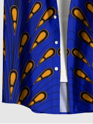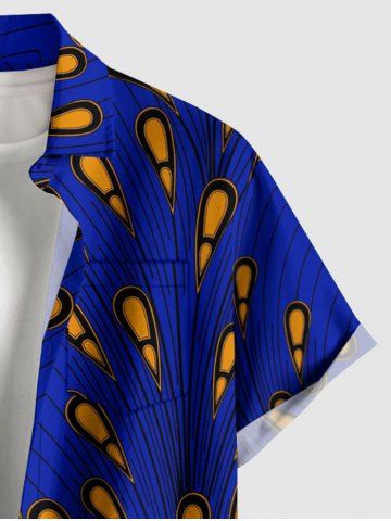 Plus Size Peacock Feather Print Hawaii Buttons Pocket Shirt For Men - Blue - 5xl