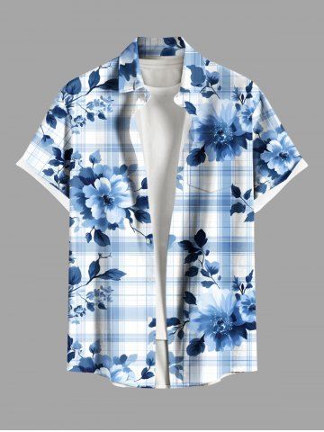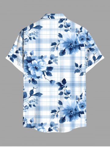 Plus Size Peony Flowers Plaid Print Buttons Pocket Hawaii Shirt For Men - Light Blue - 6xl