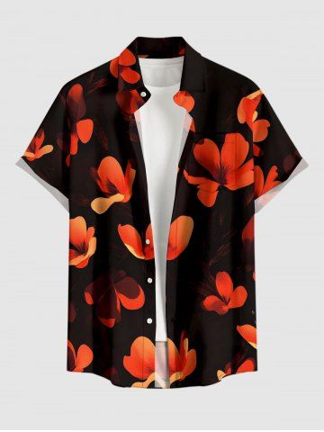 Short Sleeves Shirts > Plus Size Petal Flower Print Hawaii Button Pocket Shirt For Men