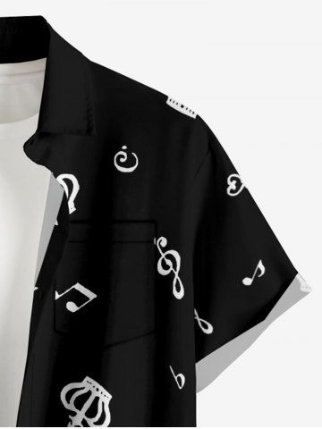 Plus Size Piano Music Symbol Print Hawaii Button Pocket Shirt For Men - Black - 2xl