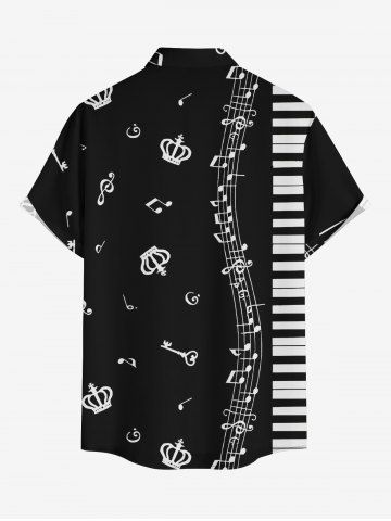Short Sleeves Shirts > Plus Size Piano Music Symbol Print Hawaii Button Pocket Shirt For Men