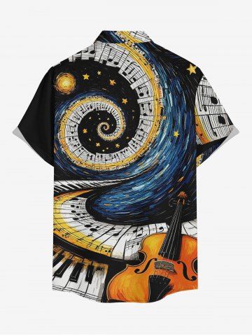 Plus Size Piano Music Symbol Spiral Galaxy Guitar Print Hawaii Button Pocket Shirt For Men - Black - L