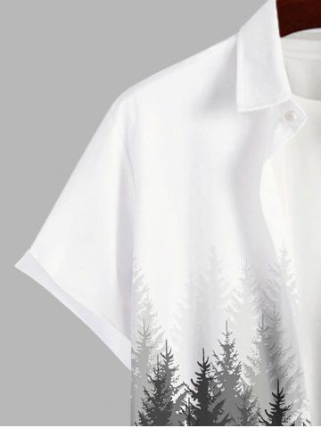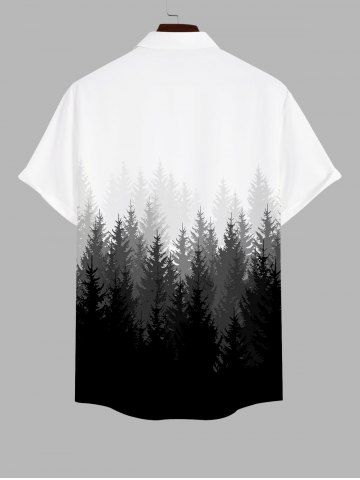 Short Sleeves Shirts > Plus Size Pine Tree Ombre Colorblock Print Buttons Pocket Shirt For Men