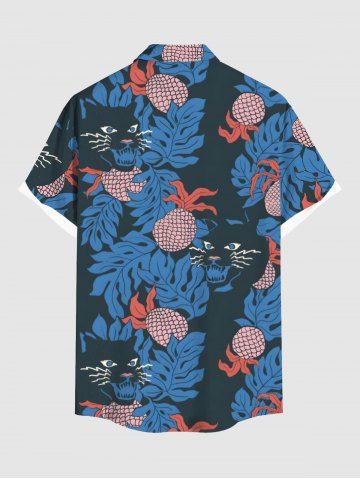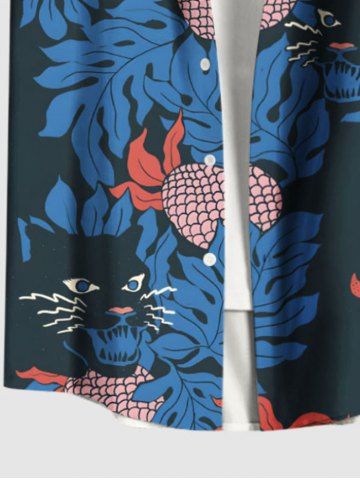 Short Sleeves Shirts > Plus Size Pineapple Cat Tropical Leaf Print Hawaii Button Pocket Shirt For Men