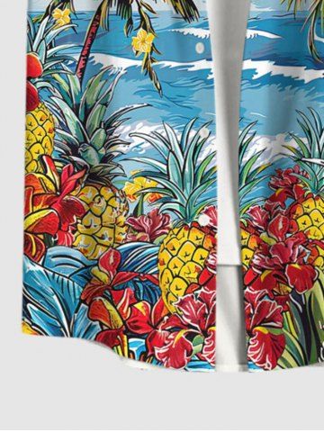 Plus Size Pineapple Coconut Tree Flowers Sea Waves Cloud Print Buttons Pocket Hawaii Shirt For Men - Multi-a - Xl