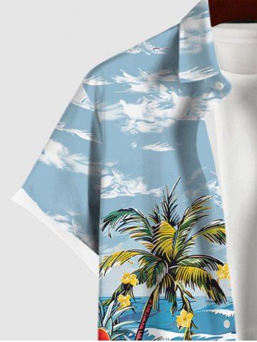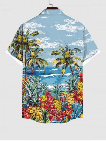 Short Sleeves Shirts > Plus Size Pineapple Coconut Tree Flowers Sea Waves Cloud Print Buttons Pocket Hawaii Shirt For Men