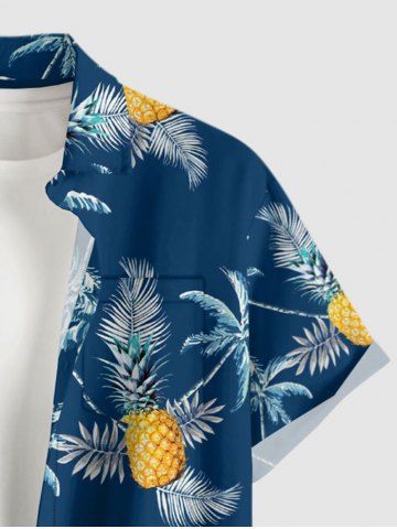 Plus Size Pineapple Coconut Tree Print Buttons Pocket Hawaii Shirt For Men - Deep Blue - 3xl
