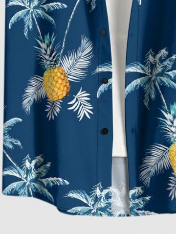 Plus Size Pineapple Coconut Tree Print Buttons Pocket Hawaii Shirt For Men - Deep Blue - 4xl