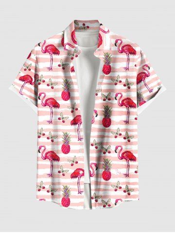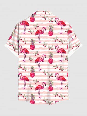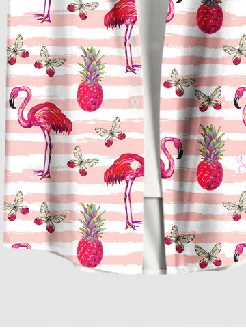 Plus Size Pineapple Flamingo Butterfly Print Buttons Pocket Hawaii Shirt For Men - Light Pink - Xl
