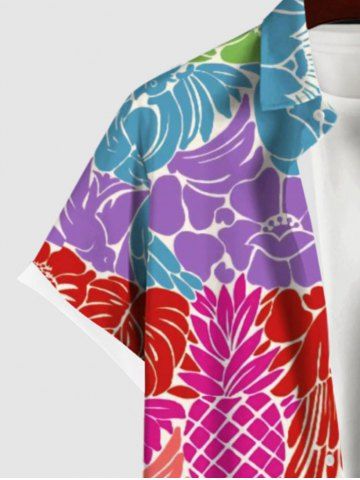 Short Sleeves Shirts > Plus Size Pineapple Floral Coconut Leaves Bird Colorblock Print Hawaii Button Pocket Shirt For Men