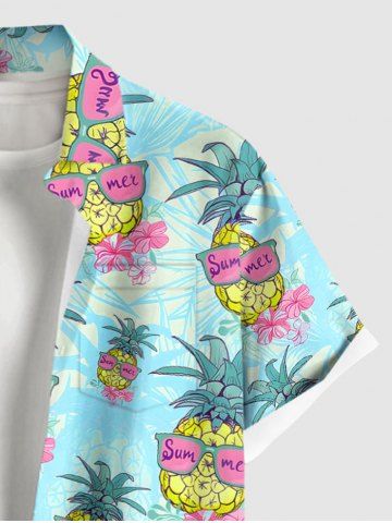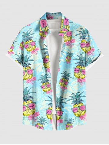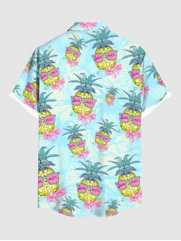 Plus Size Pineapple Floral Sunglasses Print Hawaii Button Pocket Shirt For Men - Light Blue - L