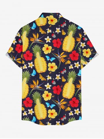 Short Sleeves Shirts > Plus Size Pineapple Hibiscus Flower Butterfly Print Hawaii Button Pocket Shirt For Men
