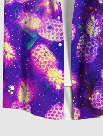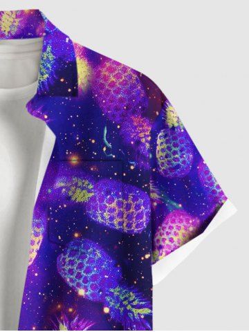 Plus Size Pineapple Ombre Galaxy Print Hawaii Button Pocket Shirt For Men - Purple - Xl