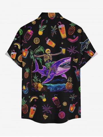Plus Size Pineapple Skeleton Fruit Juice Coconut Tree Print Buttons Pocket Hawaii Shirt For Men - Black - 5xl
