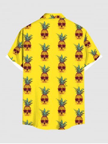 Plus Size Pineapple Skulls Print Buttons Pocket Hawaii Shirt For Men - Yellow - M