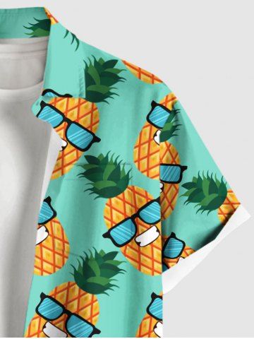 Plus Size Pineapple Sunglasses Print Buttons Pocket Hawaii Shirt For Men - Green - 4xl