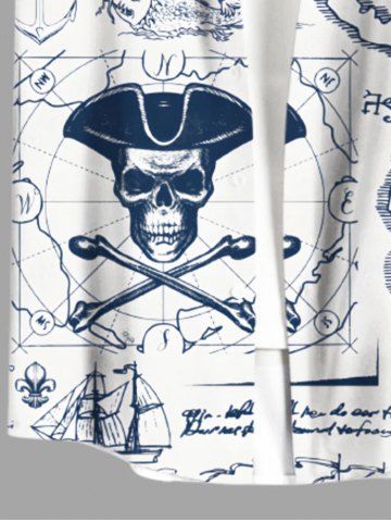Plus Size Pirate Map Sailboat Compass Print Buttons Pocket Hawaii Cruise Shirt For Men - White - M