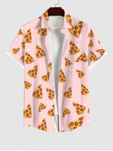 Plus Size Pizza Print Button Pocket Shirt For Men - Light Pink - Xl